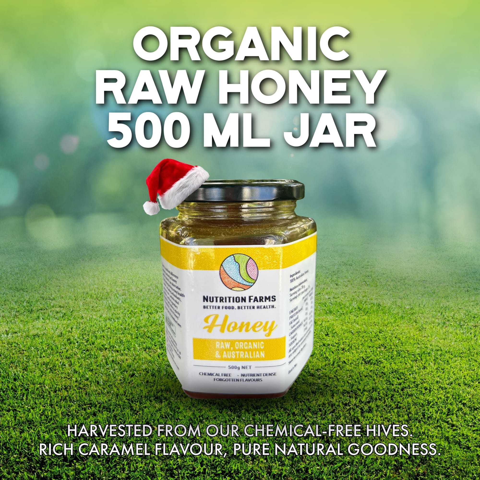 1) Nutrition Farms Organic Raw honey - 500 ml jar - harvested from our own hives on our isolated, chemical-free farm. This superbly flavoured health treat features distinctive caramel overtones.