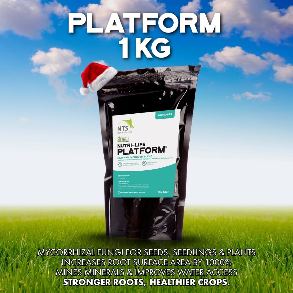 1) Platform - 1 kg - this is a blend of mycorrhizal fungi that can be used to treat seed, seedlings and existing plants. These organisms burrow into the roots and then create a massive network of fine filaments, effectively increasing the root surface area by 1000%. This biological root extension mines minerals (including phosphate and zinc), stimulates immunity, and increases access to moisture.