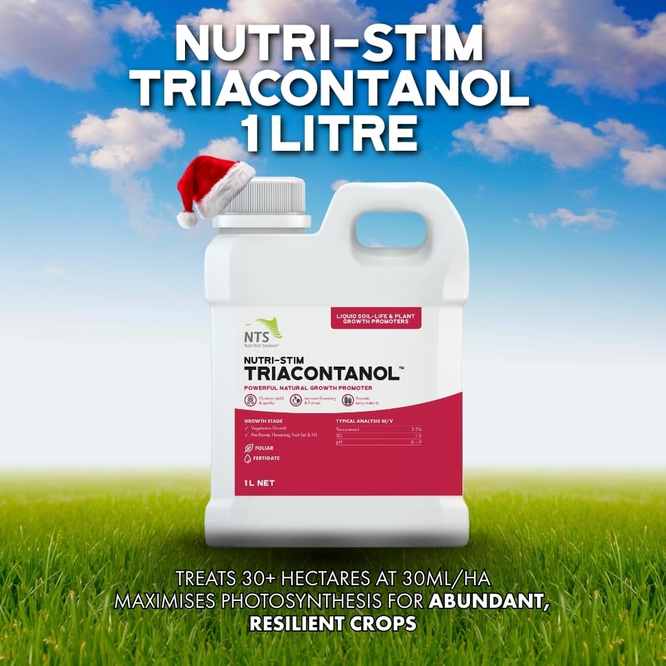 4) Nutri-Stim Triacontanol - 1 litre - this one-litre bottle can treat more than 30 hectares (at a foliar rate of just 30 ml per hectare). Triacontanol is a natural, powerhouse plant growth promotant. Its mode of action centres around boosting every aspect of photosynthesis to produce abundant, resilient crops with better flavour.