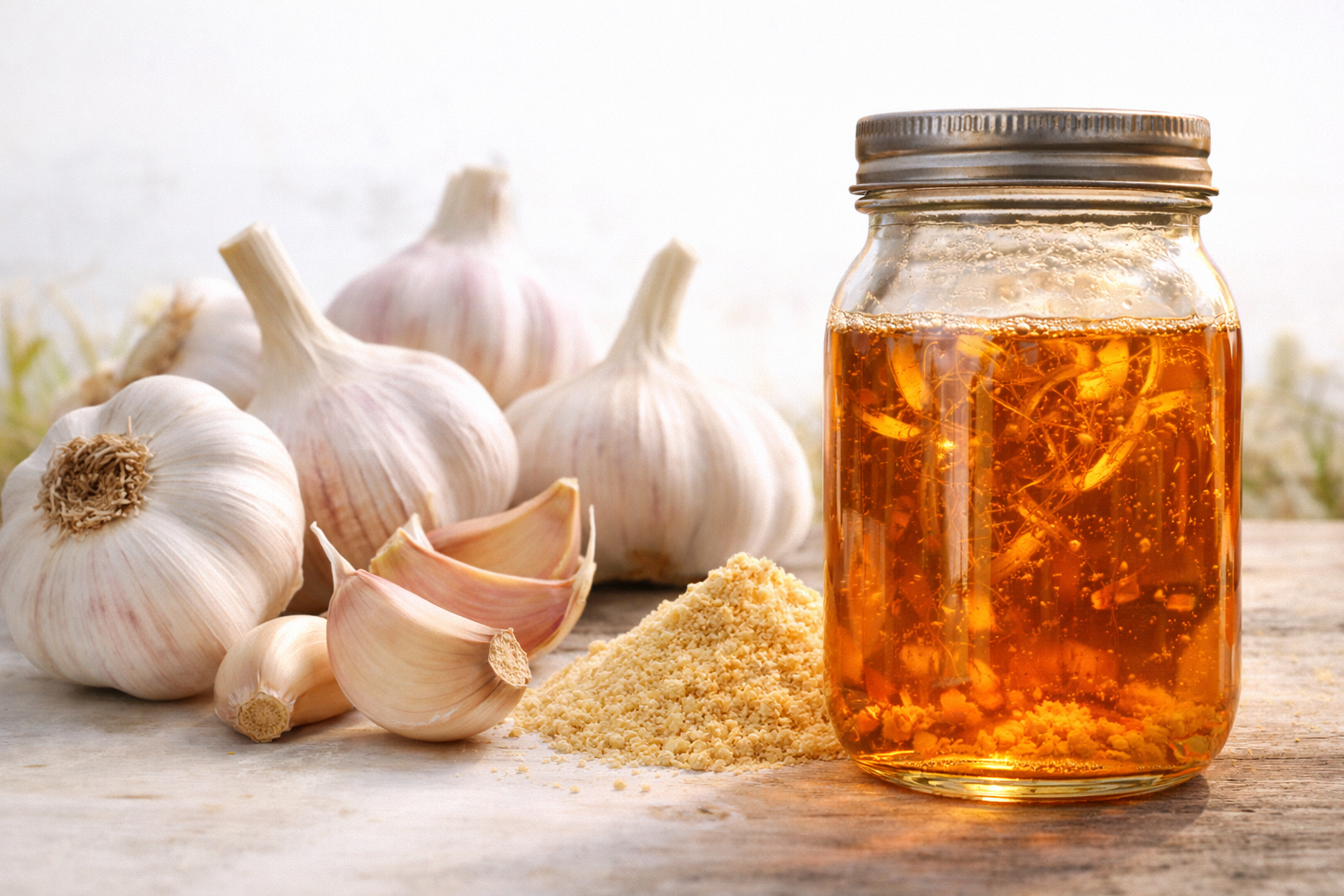 ACV enhances mineral solubility and digestive efficiency, while garlic provides antimicrobial, immune and antiparasitic support. Together, they function as a whole-system tonic rather than a single-purpose additive.