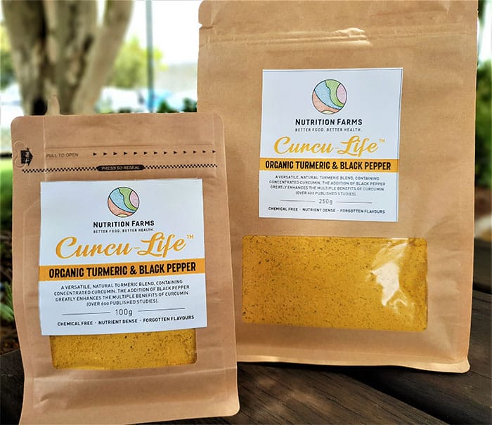 At this point, I feel obliged to mention my product, Curcu-Life, which is a freeze-dried concentrate of nutrient-dense turmeric from Nutrition Farms. This product also has a 9% black pepper additive to magnify the uptake and utilisation of the curcumin component. You can source it online via our web shop.
