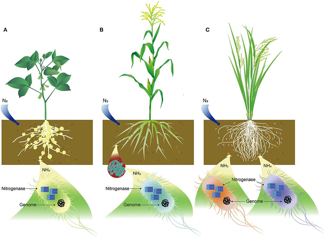 B12 is a critical cofactor in the creation of nitrogenase. This enzyme is used by nitrogen-fixing organisms, like rhizobium, and specialist actinomycetes, called Frankia, to pull nitrogen gas from the atmosphere and convert it to ammonium nitrogen in the soil.