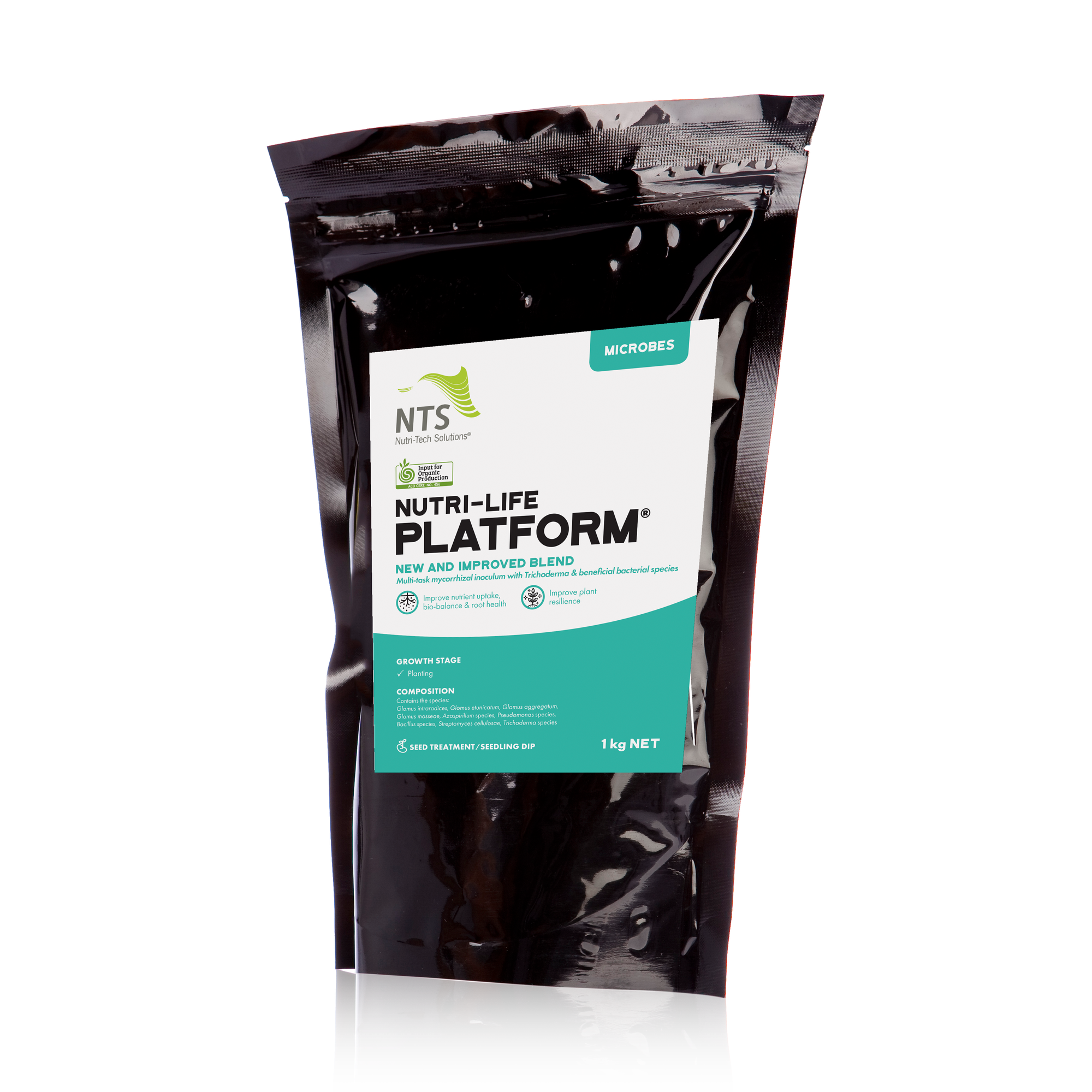 Arbuscular Mycorrhizal Fungi (AMF) (4 species) now blended with a broader range of complementary species including Trichoderma and beneficial bacteria.