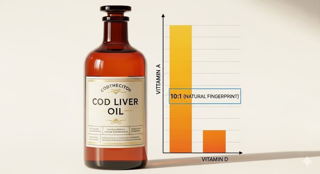 1) Check the Vitamin A: Vitamin D Ratio - this is the fingerprint test because naturally that should be somewhere between 5:1 and 10:1. The red flag for added synthetics is high Vitamin D with low Vitamin A