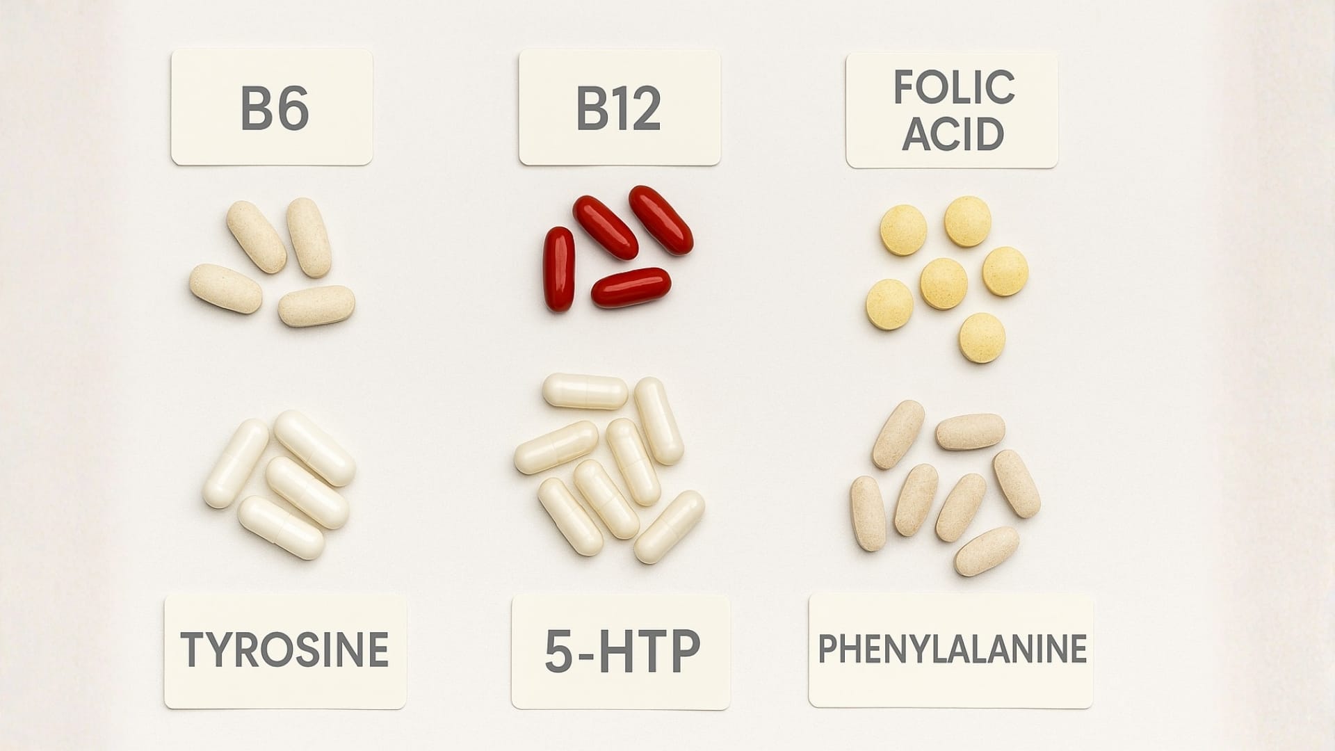 A good strategy is to combine 5-HTP with tyrosine and phenylalanine and the three B vitamins that turn them into neurotransmitters: B6, B12, and folic acid.