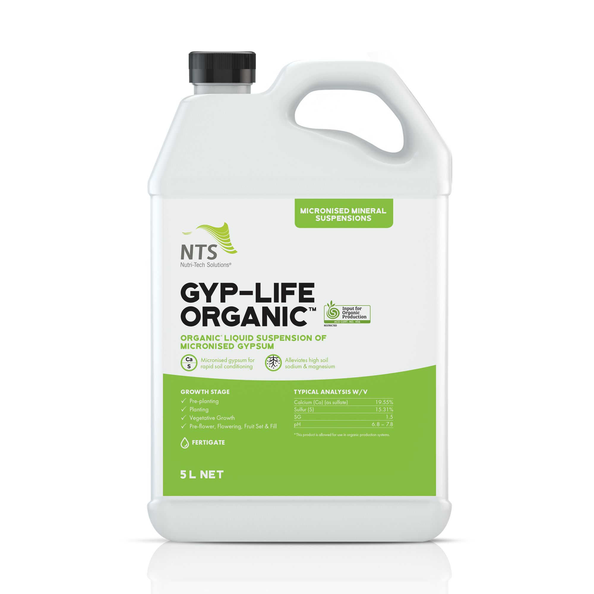 A high-analysis source of micronised natural gypsum combined in a free-flowing suspension with fulvic acid. The soil conditioning capacity of gypsum is dramatically magnified with the huge increase in surface area associated with micronisation.