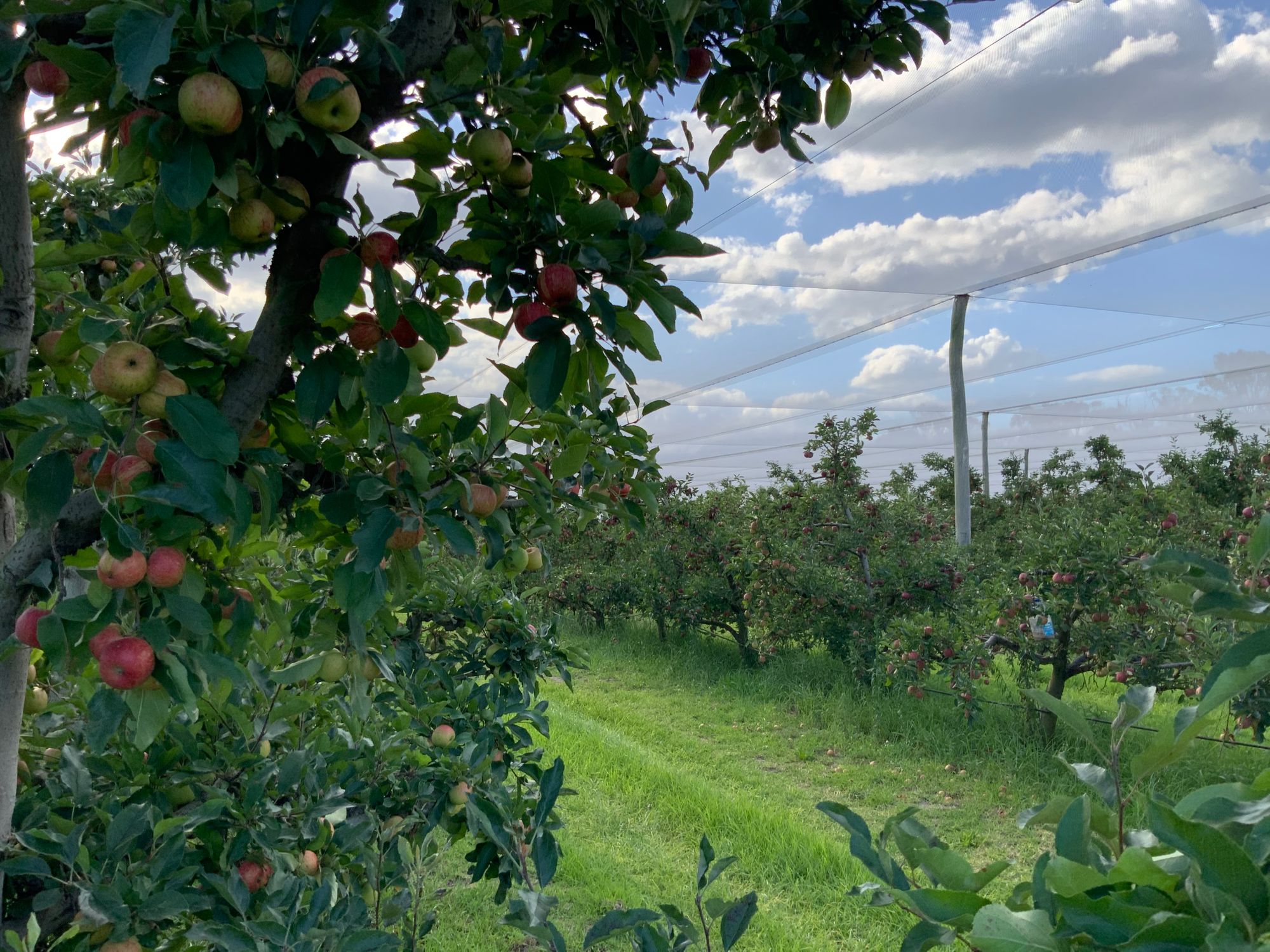 The apple trees are tested and monitored each week and fed exactly what they need. Diseases are managed without fungicides, through a combination of protective minerals (like silica) and task-specific microbial inoculums. Insect pests are managed with traps, lures and natural immune-elicitors. Weeds beneath the trees are mechanically controlled with an under-tree mowing disc.