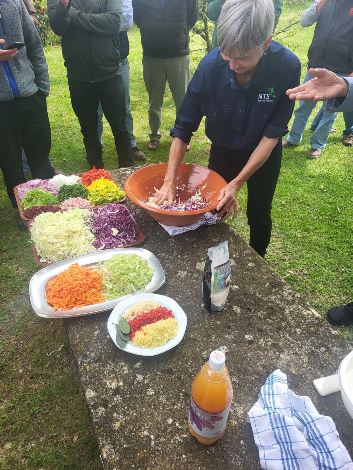 One of the most engaging parts of the “How to Do It” day was the rainbow sauerkraut demonstration. Claudia prepared the 12 ingredients while I explained the function and benefits of each. The principle of “make every plate a rainbow” relates to the protective antioxidant pigments in colourful foods. When fermented, the bioavailability of nutrients can increase by up to 500%, making this dish both a celebration and a superfood.