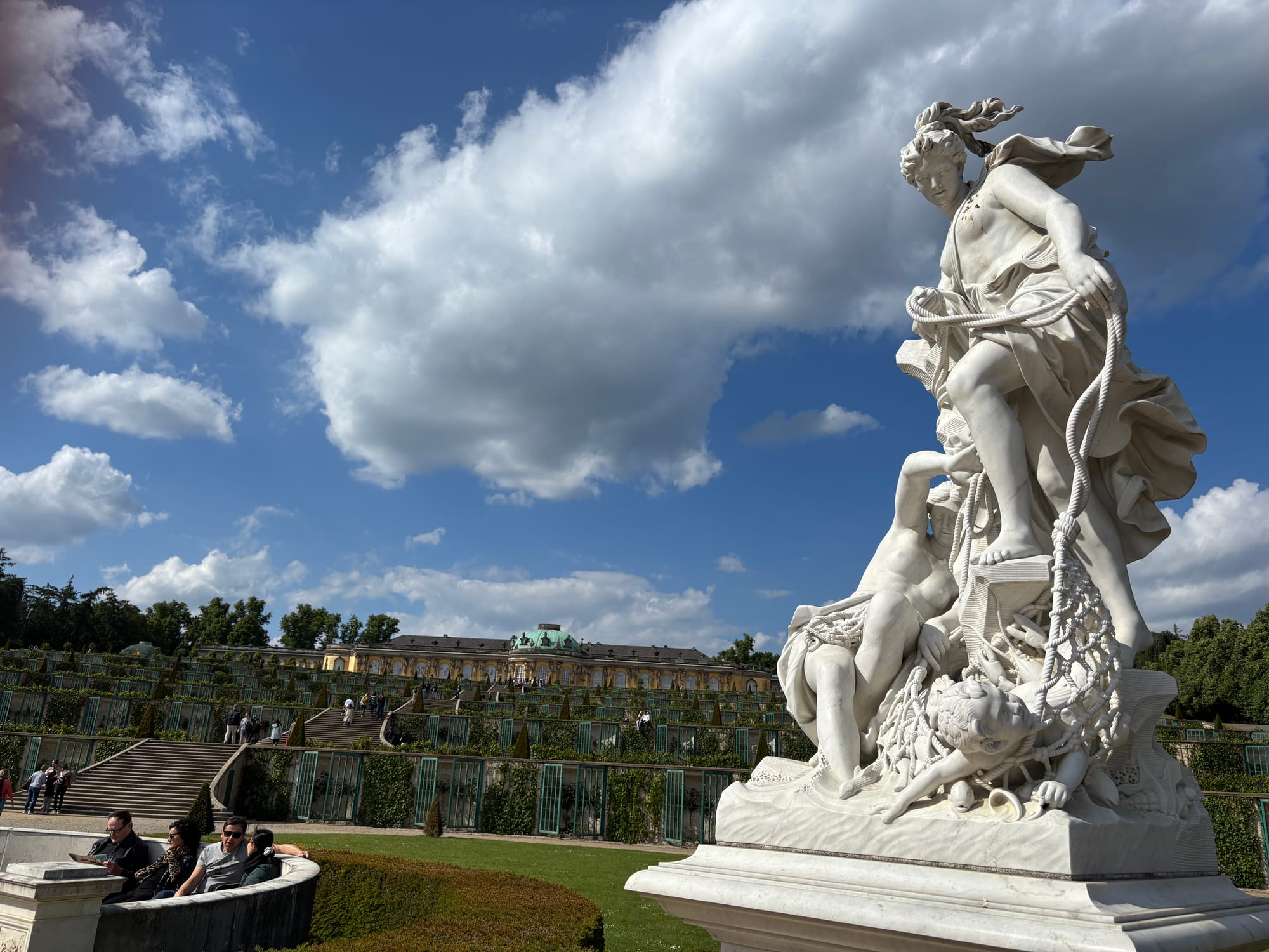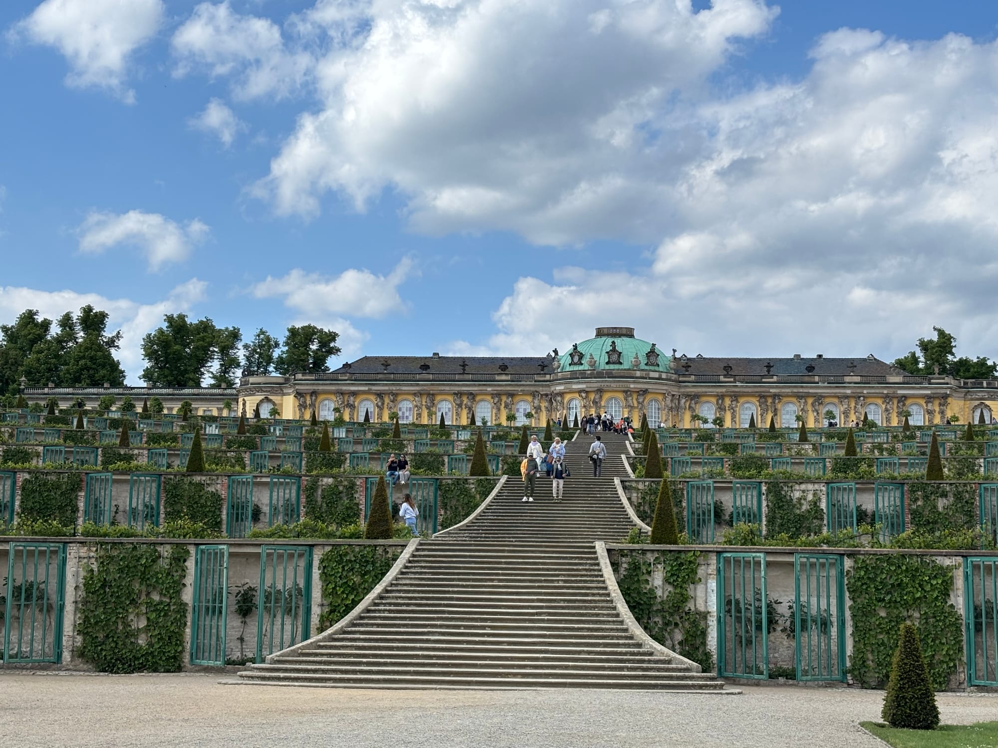 This was the summer house for the Prussian King, Frederick the Great, constructed in 1740. The translation means “carefree”, and it was intended to be more about comfort than grandeur—a retreat from the pomp and ceremony of the main residence and court. A second serious skite show called “the New Palace” was later built in another corner of the massive formal parklands, but was rarely used.