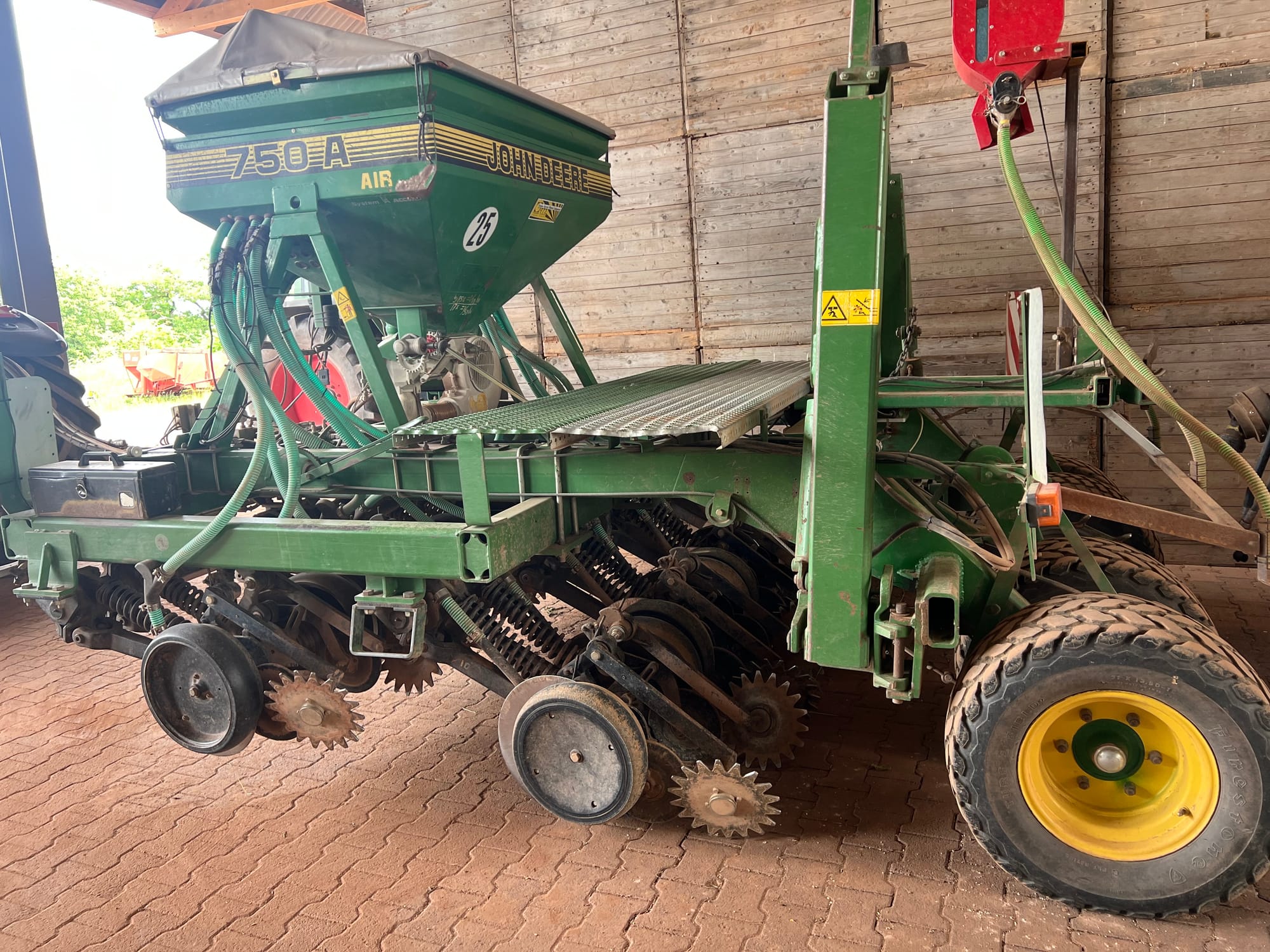 Dolf has a seed sorter that enables dual or triple plantings. One particularly successful combination is fava beans and oats. The fava beans have yielded particularly well and obviously enjoy the synergy (see photo). One wonders if there is commercial potential in using this strategy with the variety of fava (broad beans) favoured for human consumption.