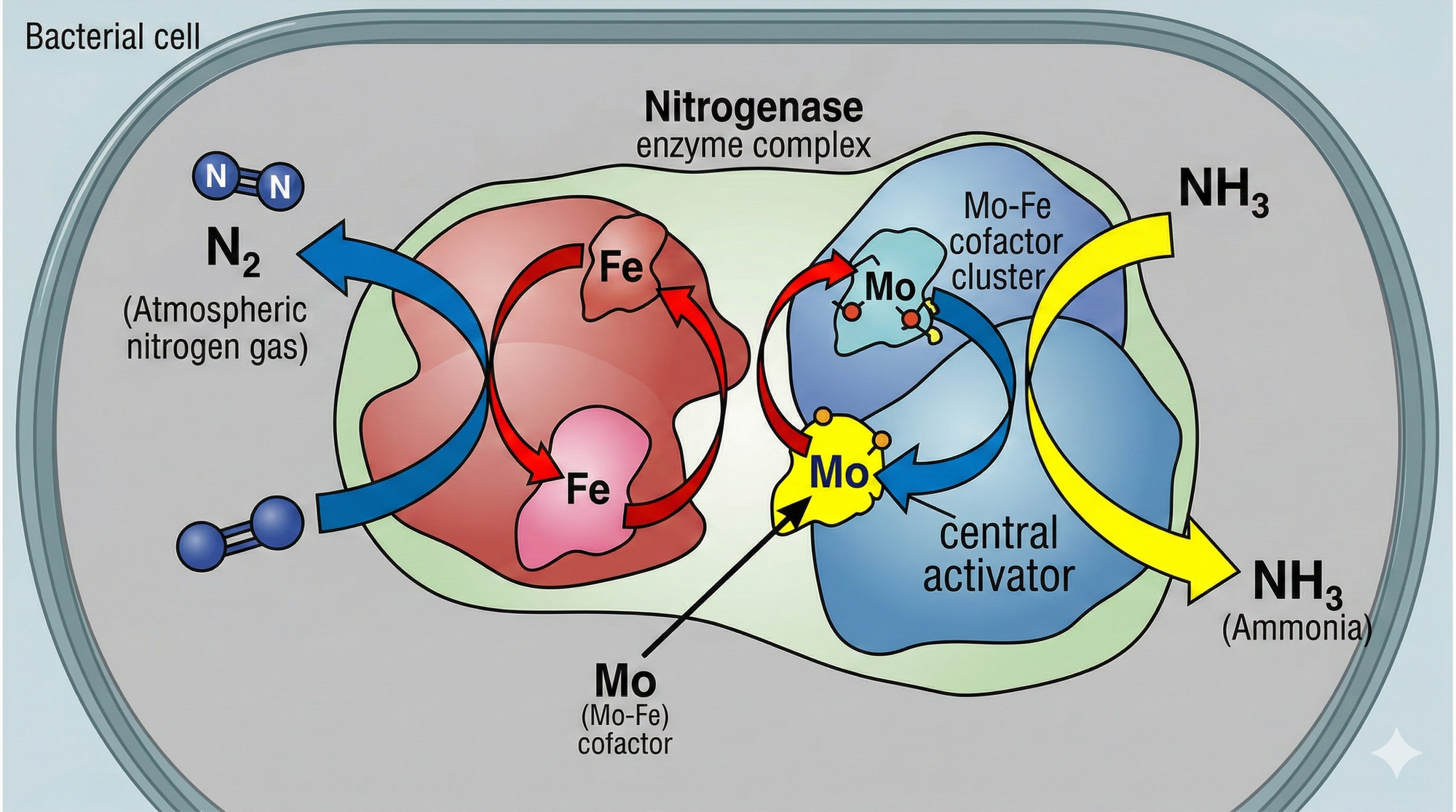 That comes down to a little neglected trace mineral called, molybdenum. Molybdenum is missing in 8 out of ten soils we test, and it is required for the nitrogenase enzyme that catalyses the conversion of atmospheric nitrogen into ammonium nitrogen in the soil. Only small amounts are required, and shortages can be addressed with seed treatment, liquid inject and foliar applications of sodium molybdate or liquid molybdenum fertilisers.